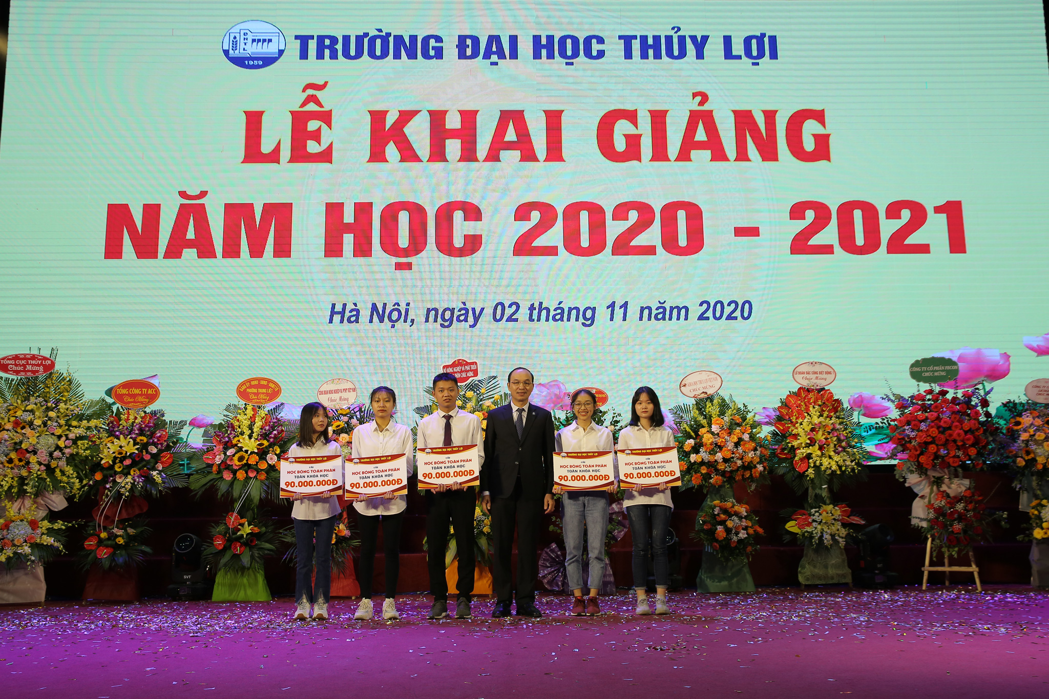 Cũng tại lễ khai giảng, Nhà trường đã công bố các quyết định và trao trên 1 tỷ đồng học bổng cho sinh viên khóa 62. Trong đó, trao cho 5 sinh viên có điểm trúng tuyển cao nhất vào Trường học bổng toàn phần trị giá 90 triệu đồng/ suất; trao học bổng bán phần cho 15 sinh viên có điểm trúng tuyển cao nhất vào các ngành truyền thống với giá trị 45 triệu đồng/ suất và học bổng của các doanh nghiệp dành cho sinh viên có điểm cao nhất vào các ngành. Tại đây, đại diện lãnh đạo trường cũng đón nhận và trân trọng sự ủng hộ quý báu của các nhà tài trợ cho quỹ học bổng của Nhà trường nhân năm học mới.