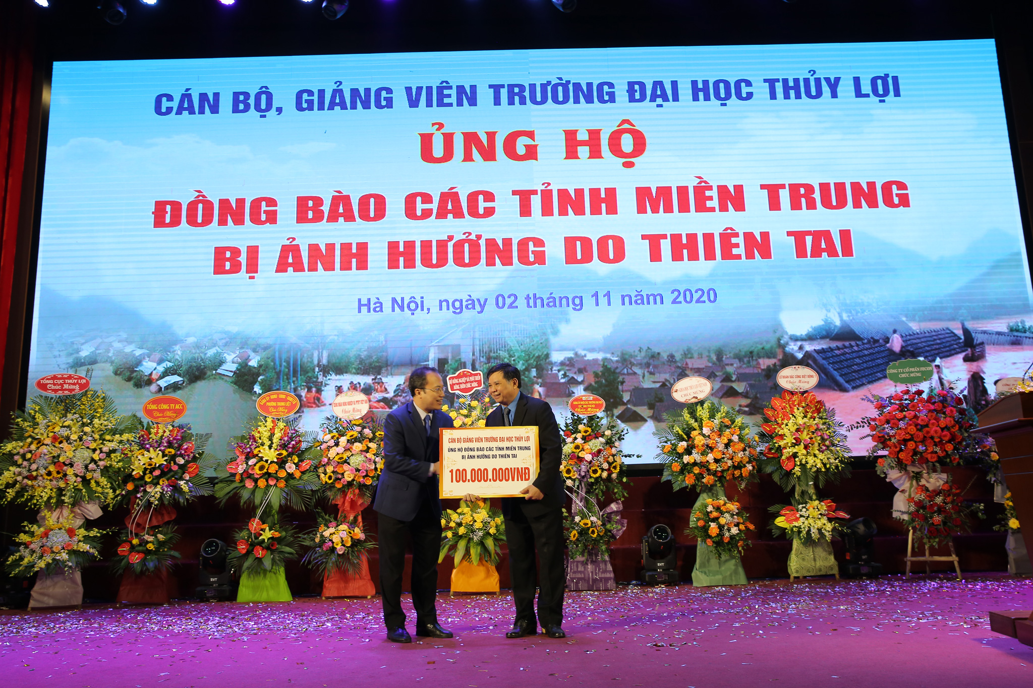 Nhân dịp khai giảng năm học mới, cán bộ, giảng viên Trường Đại học Thủy lợi cũng ủng hộ 100 triệu đồng hỗ trợ đồng bào miền Trung chịu ảnh hưởng do thiên tai. Việc làm này thể hiện tinh thần tương thân tương ái, một truyền thống quý báu của dân tộc Việt Nam.