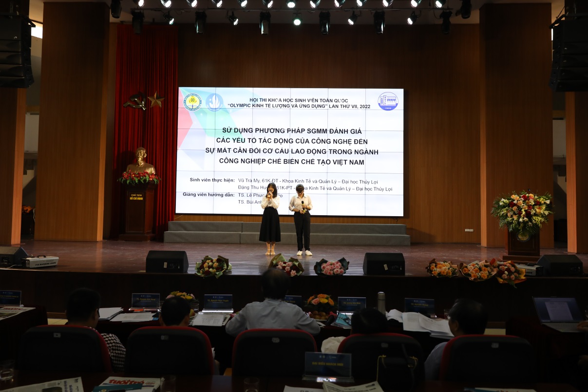 Kết quả, Ban tổ chức đã trao 4 giải Nhất, 10 giải Nhì, 20 giải Ba và 21 giải Khuyến khích. Trong đó, Trường Đại học Thủy lợi giành 1 Giải Nhì, 4 Giải Ba (phân hiệu có 01 giải), 1 Giải khuyến khích. Đặc biệt chúng ta có 01 nhóm được báo cáo trước Hội đồng cùng 6 trường đại học khối kinh tế khác trên cả nước, đó là nhóm sinh viên Đặng Thu Huyền, lớp 61 K-PT và Vũ Trà My, lớp 61 K-ĐT với tên đề tài “Sử dụng phương pháp SGMM để đánh giá tác động của công nghệ đến sự mất cân đối chuyển dịch cơ cấu lao động của ngành chế biến chế tạo Việt Nam” do TS. Lê Phương Thảo- Bộ môn Kinh tế, TS. Bùi Anh Tú – Bộ môn Quản lý xây dựng hướng dẫn./.
