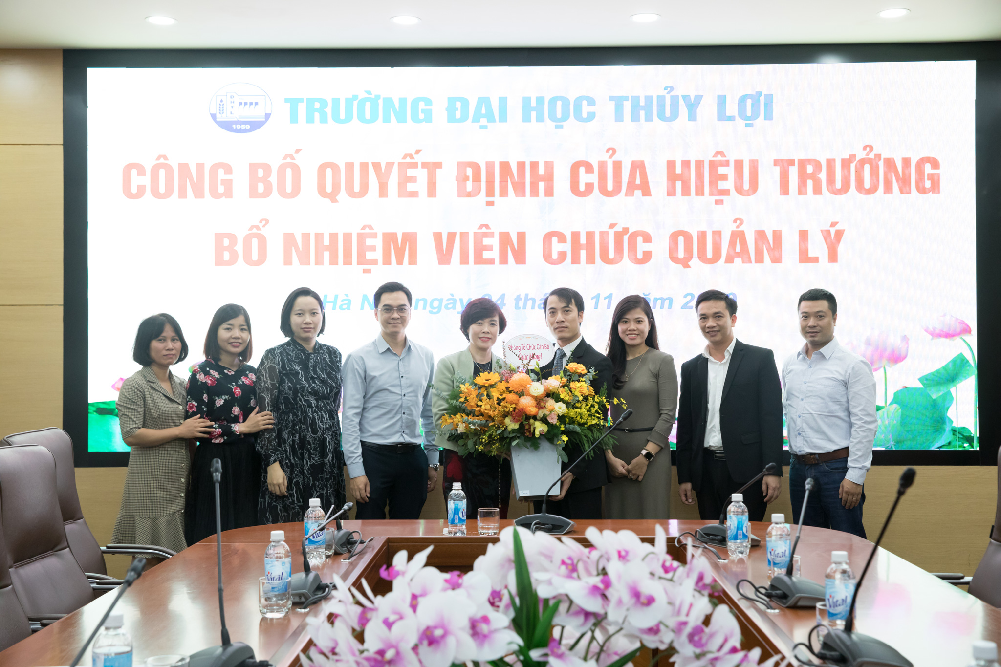Tại buổi công bố quyết định, GS.TS Trịnh Minh Thụ, Hiệu trưởng Nhà trường chúc mừng hai cán bộ được bổ nhiệm lần này. Phòng Tổ chức cán bộ là đơn vị quan trọng trong Trường Đại học Thủy lợi với khối lượng công việc lớn, thường xuyên xử lý các công việc liên quan đến chế độ chính sách, bổ nhiệm cán bộ đối với viên chức trong Nhà trường. Việc có thêm nhân sự giúp cho công việc của phòng Tổ chức cán bộ được tốt hơn đáp ứng yêu cầu của Ban giám hiệu giao cho. Đối với Viện Kỹ thuật tài nguyên nước, nhiều năm qua đã có bước phát triển tốt, đáp ứng được yêu cầu về ứng dụng khoa học công nghệ vào thực tiễn. Trong thời gian tới, trong bối cảnh phát triển chung của đất nước cũng như công việc chung của Nhà trường, Viện Kỹ thuật tài nguyên nước cần phát triển hơn nữa với các dự án, đề tài phục vụ ngành nông nghiệp, nông thôn, quy hoạch Thủy lợi..vì vậy cần thiết có thêm những cán bộ có kinh nghiệm để giúp Viện Kỹ thuật tài nguyên nước phát triển.