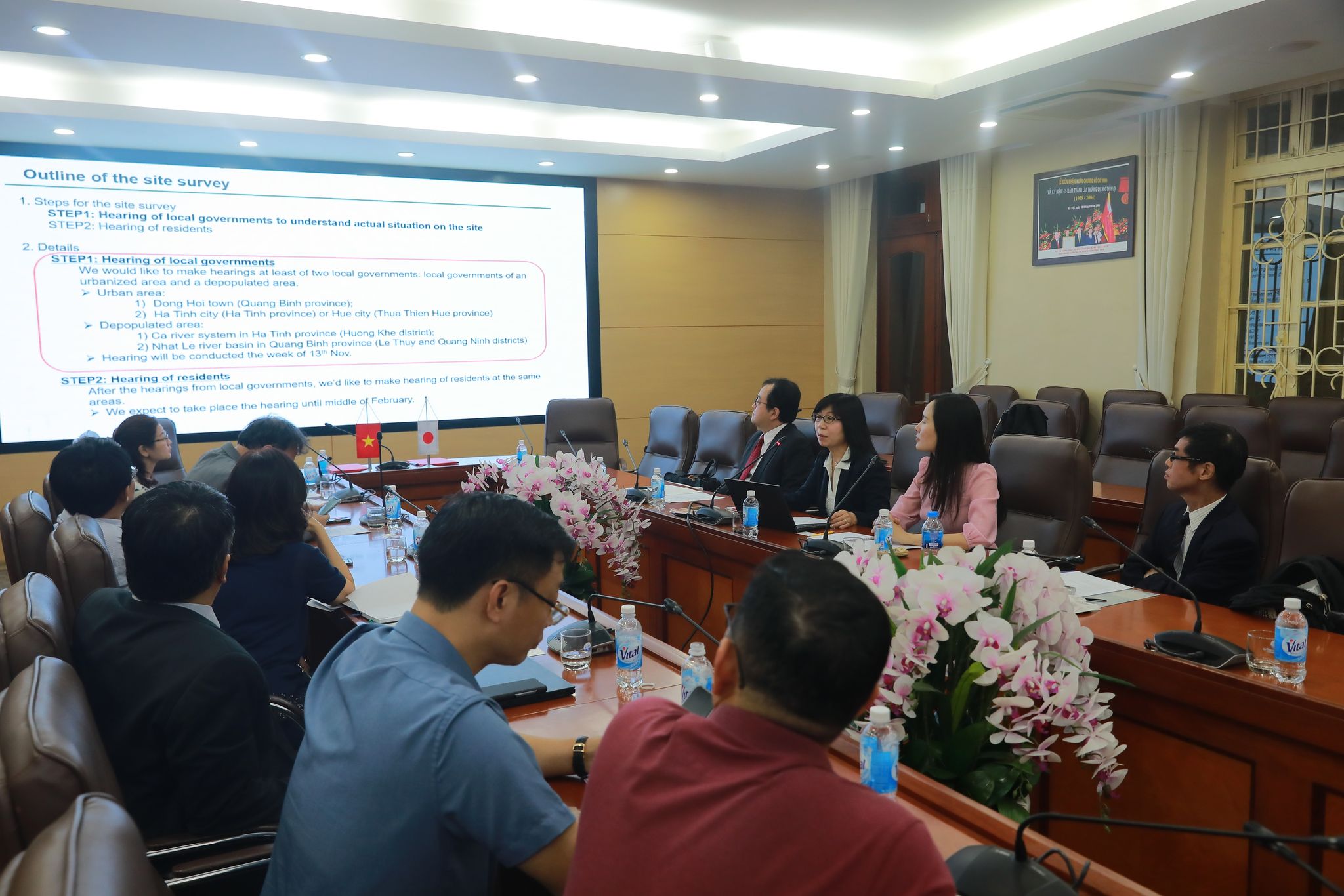 Trong buổi làm việc, các chuyên gia tư vấn cấp cao của JTEC và công ty NTT DATA Việt Nam cũng trình bày kết quả sau chuyến đi thực địa tỉnh Quảng Bình và Hà Tĩnh trong khuôn khổ “Dự án Xây dựng giải pháp phần mềm hướng dẫn sơ tán cho người dân” sắp được triển khai. Đây là dự án được xây dựng nhằm mục đích ứng dụng phần mềm công nghệ thông tin nhằm giảm thiểu thiệt hại về người khi có lũ xảy ra.