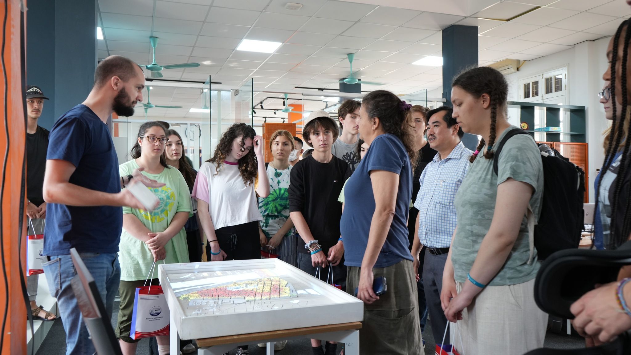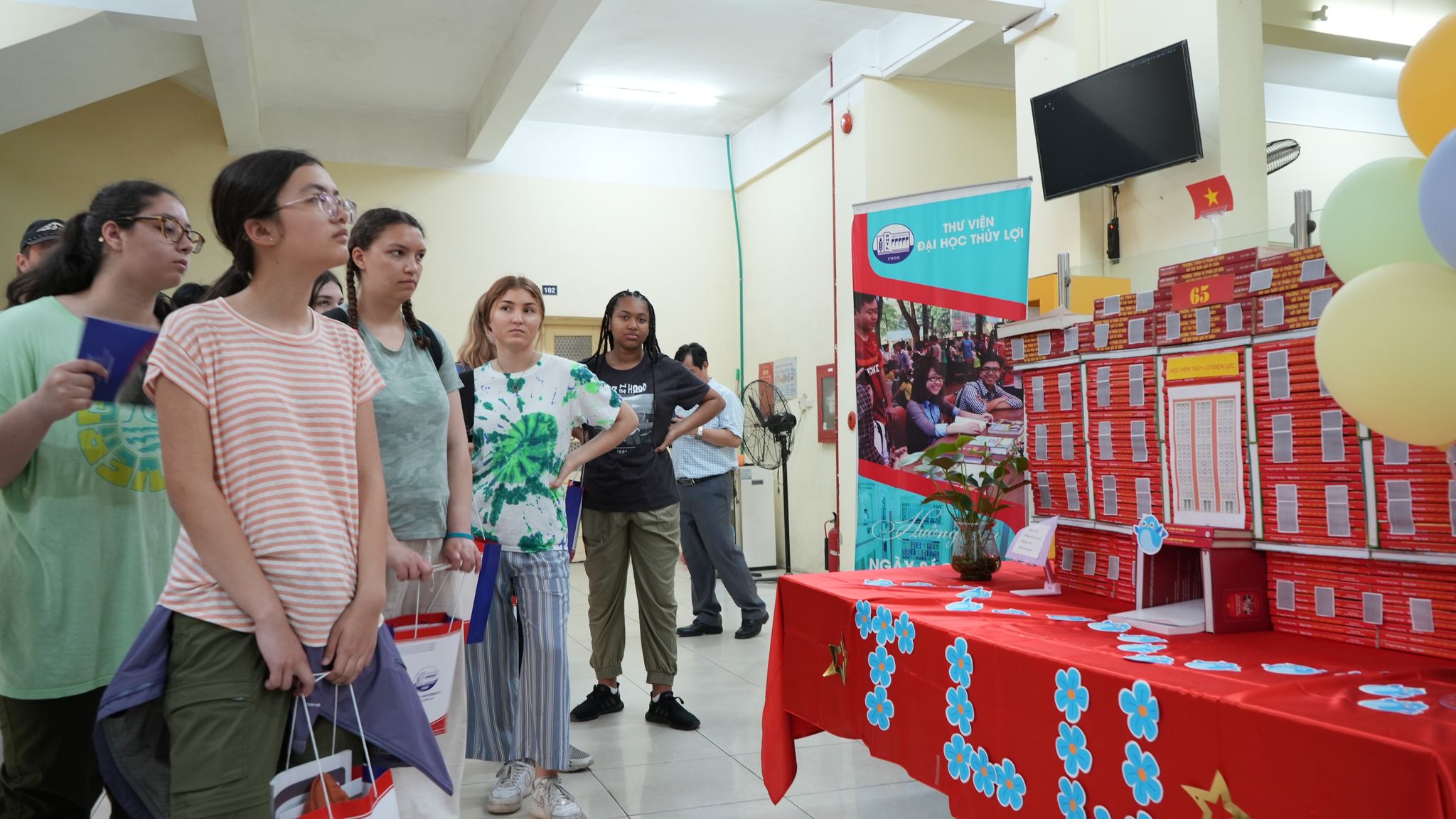 Đoàn đã lắng nghe các chuyên gia của Trường chia sẻ về lĩnh vực tài nguyên nước tại Việt Nam. Các bạn học sinh Hoa Kỳ đã giao lưu và thảo luận sôi nổi với các sinh viên của Trường Đại học Thủy lợi trong không khí rất vui vẻ, cởi mở. Đoàn công tác đã đi thăm quan các phòng thí nghiệm và thư viện của Trường. Các bạn học sinh ngoại quốc rất háo hức, và mong muốn sẽ có dịp quay lại Đại học Thủy lợi thông qua việc tham gia các chương trình học bằng Tiếng Anh mà nhà trường đang triển khai. Các sinh viên của Trường Đại học Thủy lợi cũng rất hào hứng vì có dịp giao lưu với các bạn sinh viên quốc tế.