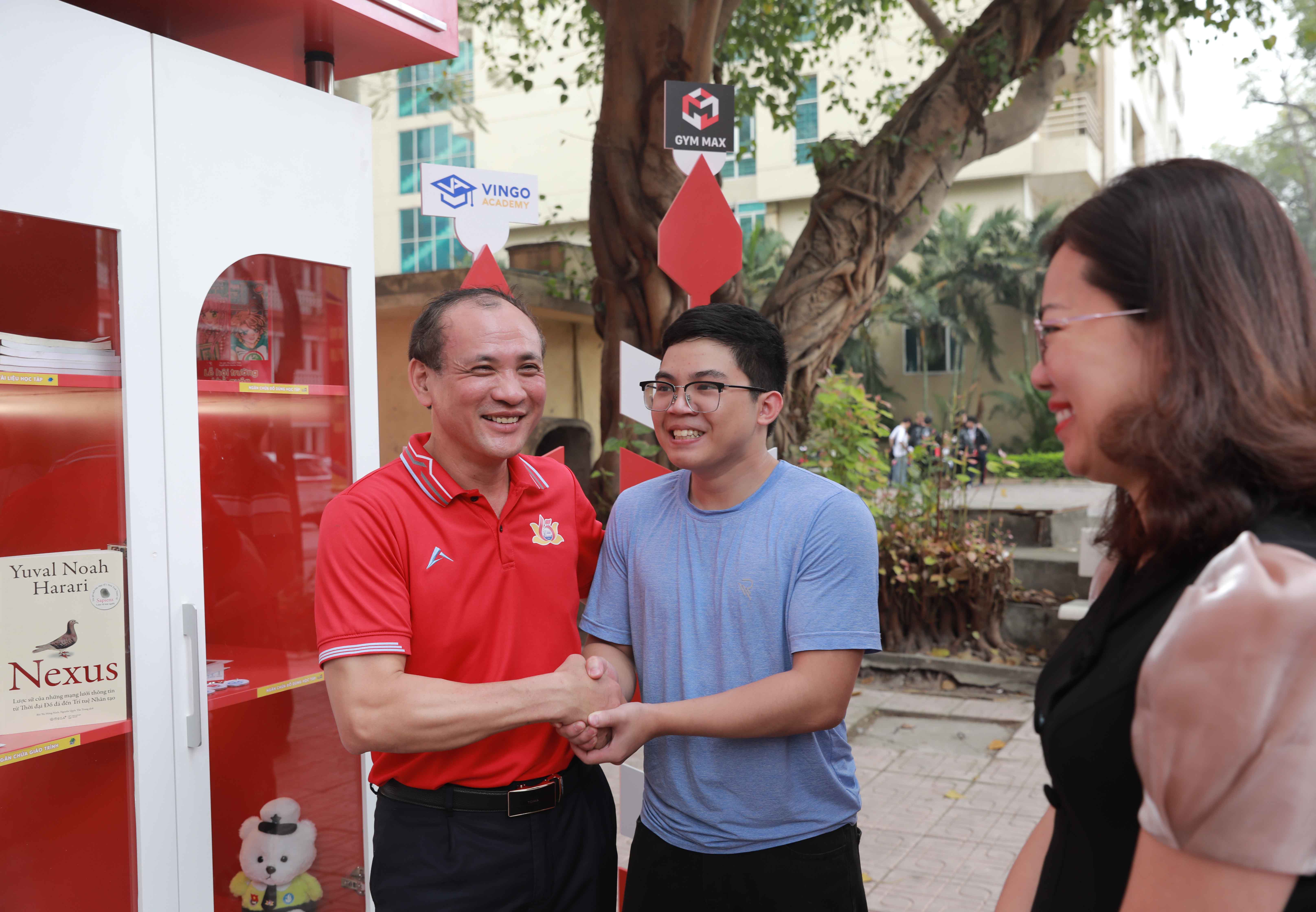 Các đoàn viên, sinh viên hào hứng đặt sách vào “Tủ Hạnh phúc”