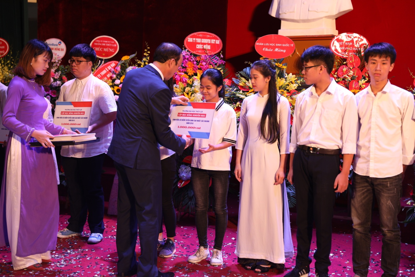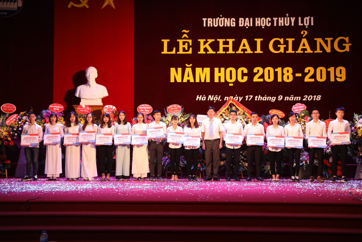 Cũng tại lễ khai giảng, Nhà trường đã công bố các quyết định và trao học bổng lên đến gần 100 triệu đồng cho các tân sinh viên K60 đạt thành tích cao trong kỳ tuyển sinh 2018; đồng thời khen thưởng cho các sinh viên đạt thành tích học tập xuất sắc trong năm học 2017 – 2018. Tại đây, đại diện lãnh đạo trường cũng đón nhận và trân trọng sự ủng hộ quý báu của các nhà tài trợ cho quỹ học bổng của Nhà trường nhân năm học mới.
