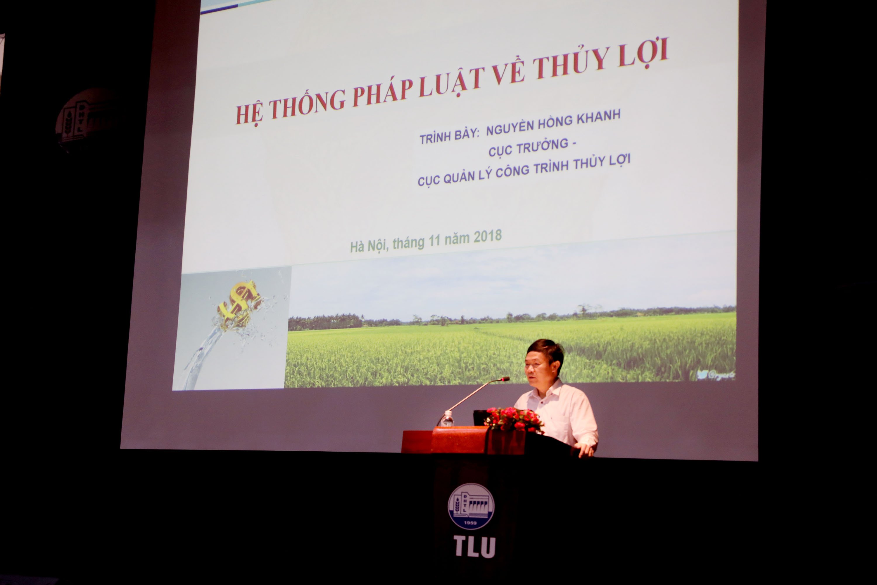 Phát biểu tại hội nghị, GS. TS Nguyễn Văn Tỉnh – Tổng cục trưởng Tổng cục Thủy lợi khẳng định việc cung cấp kiến thức pháp luật về lĩnh vực Thủy lợi và phòng chống thiên tai trong bối cảnh biến đổi khí hậu cho cán bộ, giảng viên, sinh viên là việc làm cần thiết để đáp ứng yêu cầu học tập và nghề nghiệp. Hiện hệ thống luật pháp về thủy lợi đã tương đối hoàn thiện, có cập nhật, đồng bộ với các luật: Tài nguyên nước; Đê điều; Phòng, chống thiên tai và các luật liên quan khác. Luật cũng giải quyết có hiệu quả các yêu cầu thực tiễn, tạo động lực cho toàn xã hội tham gia công tác thủy lợi