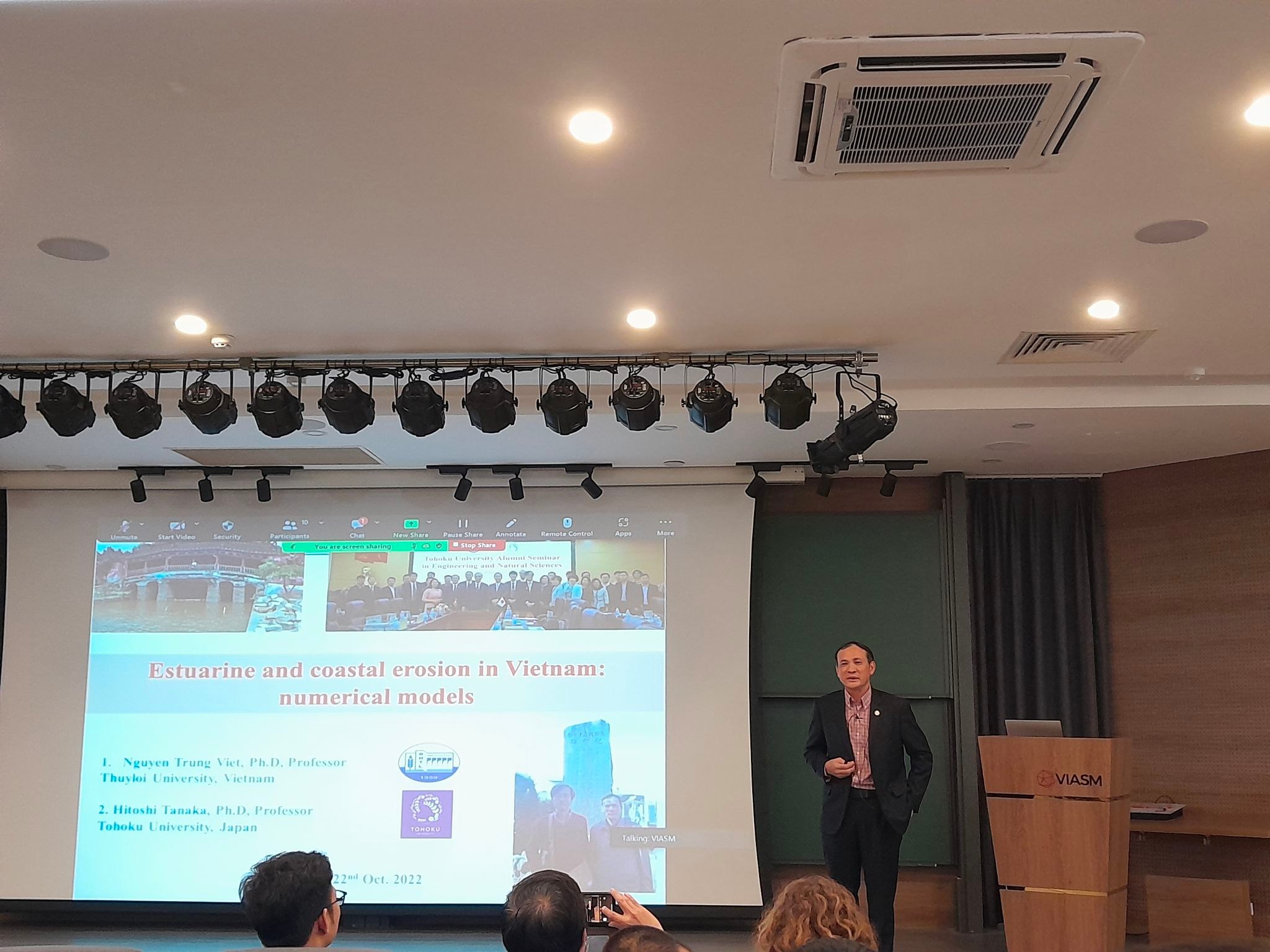 Tại Hội thảo, GS.TS Nguyễn Trung Việt – Phó Hiệu trưởng Trường Đại học Thủy lợi cũng có phần trình bày về Xói lở cửa sông và ven biển Việt Nam thông qua mô hình số; PGS.TS Nguyễn Ngọc Doanh – Phó trưởng Khoa Công nghệ thông tin cũng có giới thiệu về mô hình thủy lực trên hệ thống thủy lợi Bắc Hưng Hải.