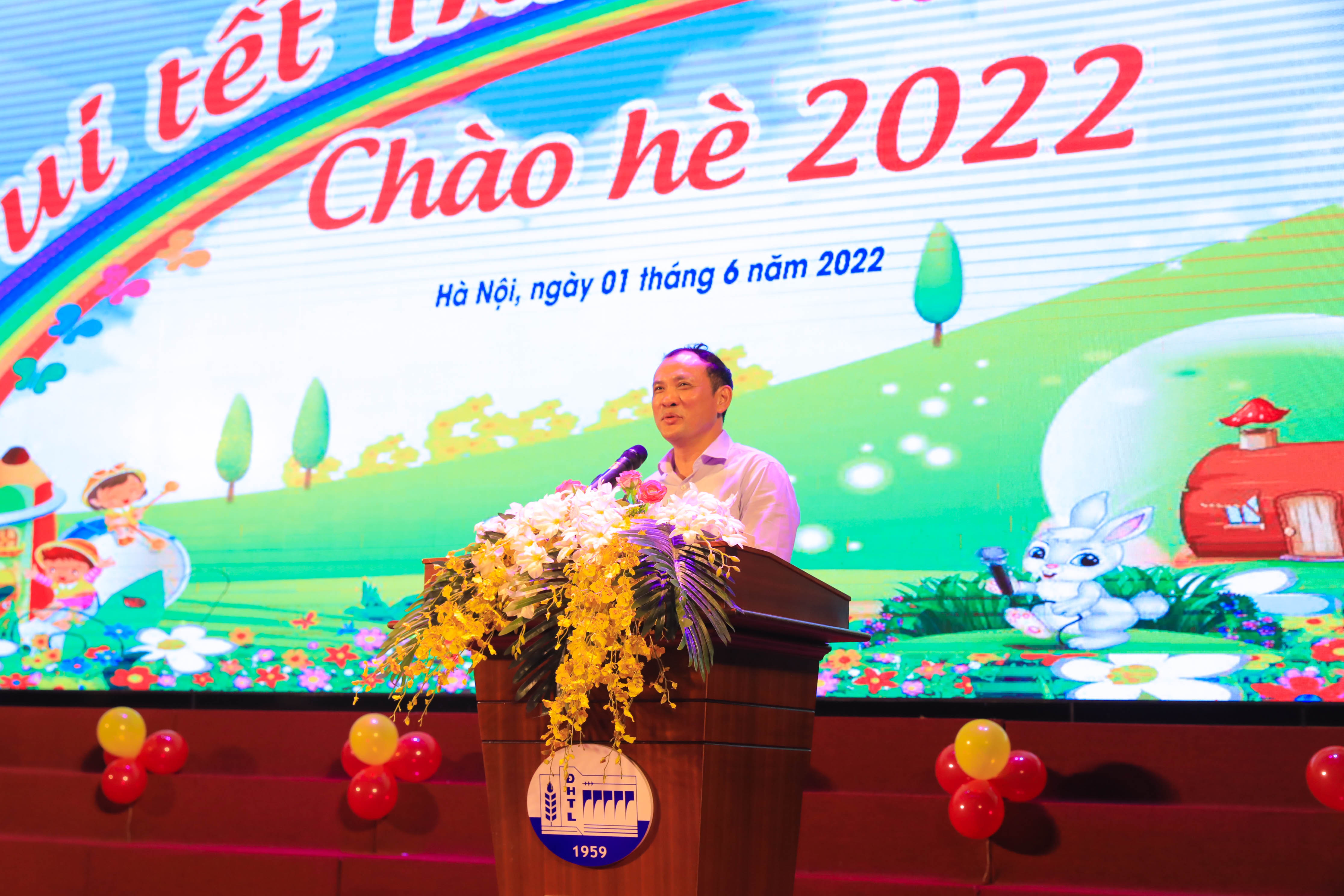 GS. TS Nguyễn Trung Việt – Phó hiệu trưởng phát biểu chúc mừng các cháu thiếu nhi đã hoàn thành năm học 2021-2022 với nhiều kết quả tốt, là động lực tích cực để các bậc phụ huynh, các cán bộ, giảng viên Nhà trường yên tâm công tác