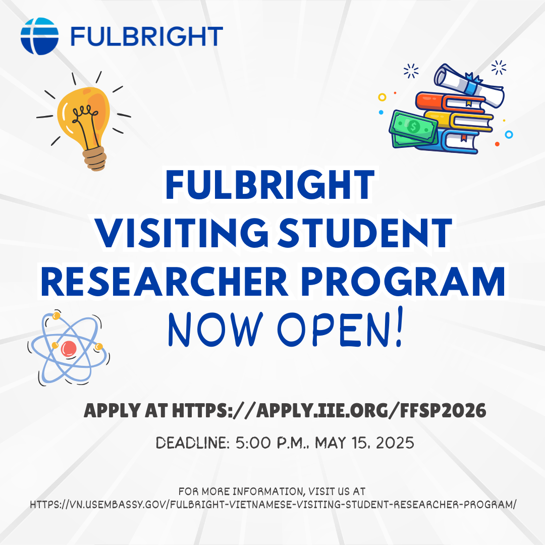 Để biết thông tin chi tiết, vui lòng xem file đính kèm cũng như tham khảo tại link: https://vn.usembassy.gov/fulbrightvietnamese-visiting-student-researcher-program/.