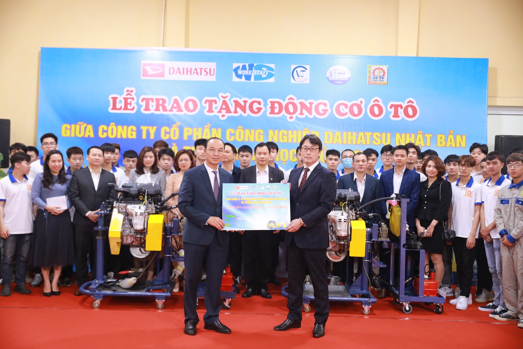 Cùng ngày, đại diện cho công ty DAIHATSU đã trao tặng hai động cơ cho Trường Đại học Thủy lợi, nhằm hỗ trợ công cụ đào tạo cho Trường, cũng là mang lại cơ hội tiếp cận, với những công nghệ hiện đại, thực tế cho sinh viên ngành kỹ thuật ô tô, trên con đường học tập và nghiên cứu, góp phần phát triển nguồn nhân lực chất lượng cao cho Việt Nam.