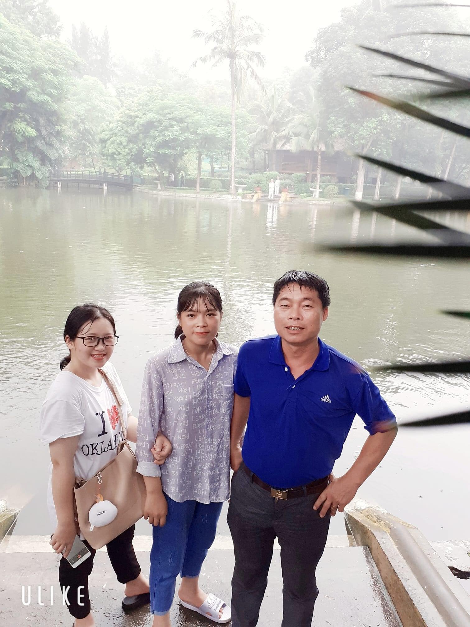 Lèng Xuân Sa (đứng giữa) chụp cùng bố khi mới nhập học tại Trường Đại học Thủy lợi