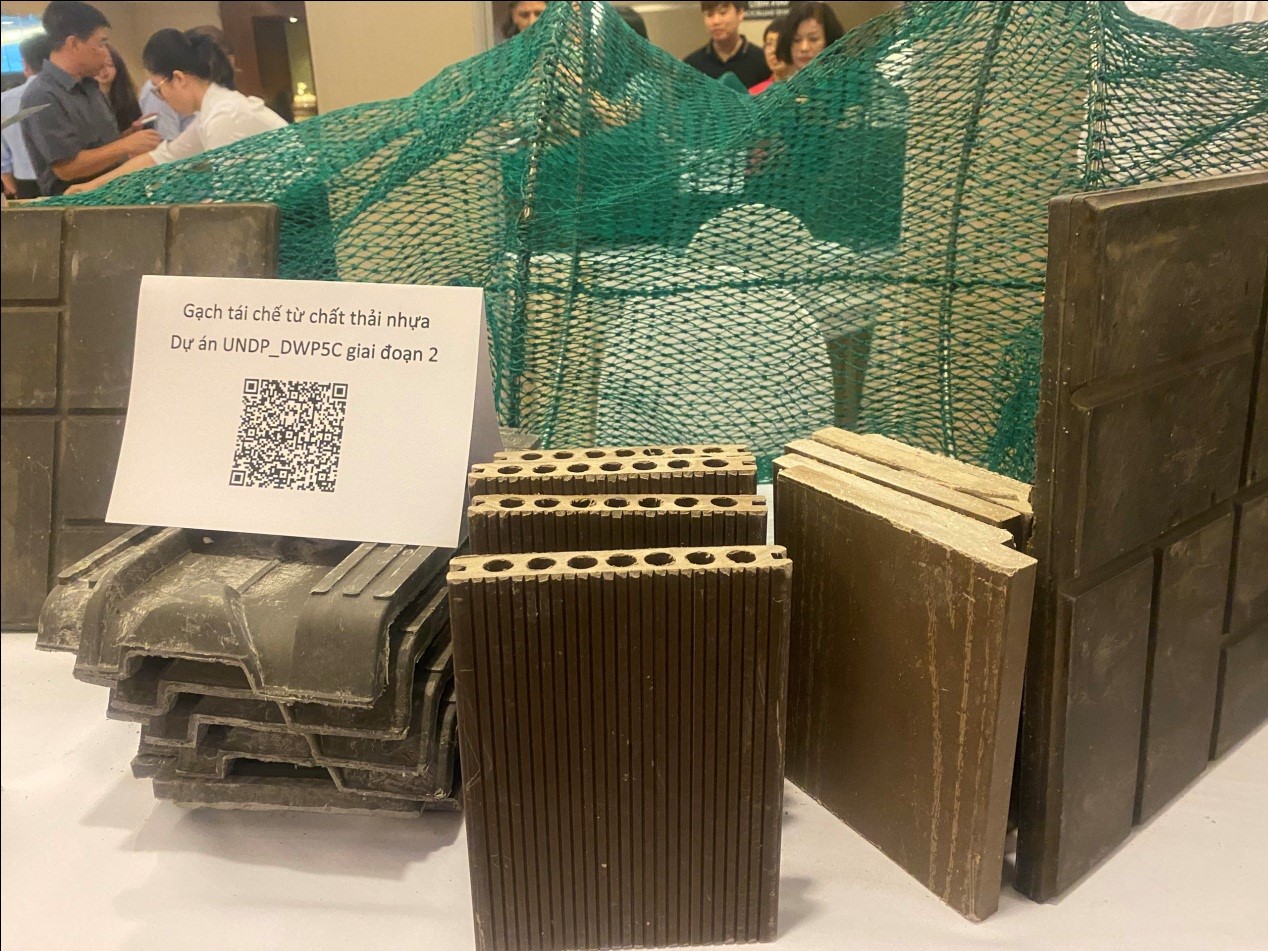 Gạch tái chế từ cất thải nhựa- Dự án UNDP _DWP5C giai đoạn 2 (Ảnh: Phương Lan)