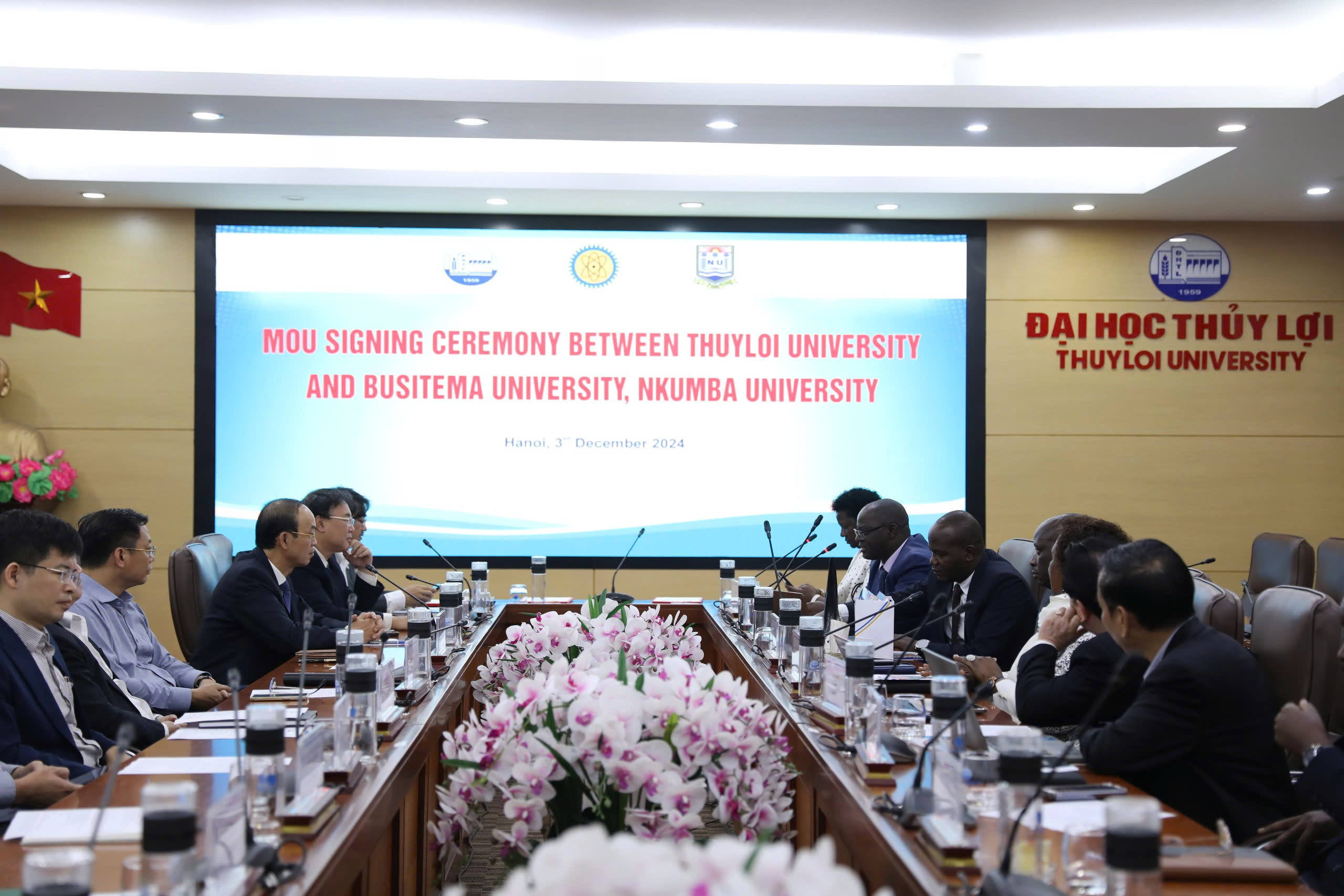 Thông qua đề xuất và hỗ trợ kết nối của Liên hiệp Hợp tác Kinh tế Việt Nam – Châu Phi (VAECA), Đoàn đại biểu từ các Trường Đại học tại Uganda (bao gồm Đại học Busitema và Đại học Nkumba) đã tới Trường Đại học Thủy lợi tham quan, làm việc và ký kết MOU nhằm tăng cường hợp tác đào tạo và nghiên cứu khoa học cùng với Nhà trường vào ngày 3/12 vừa qua.