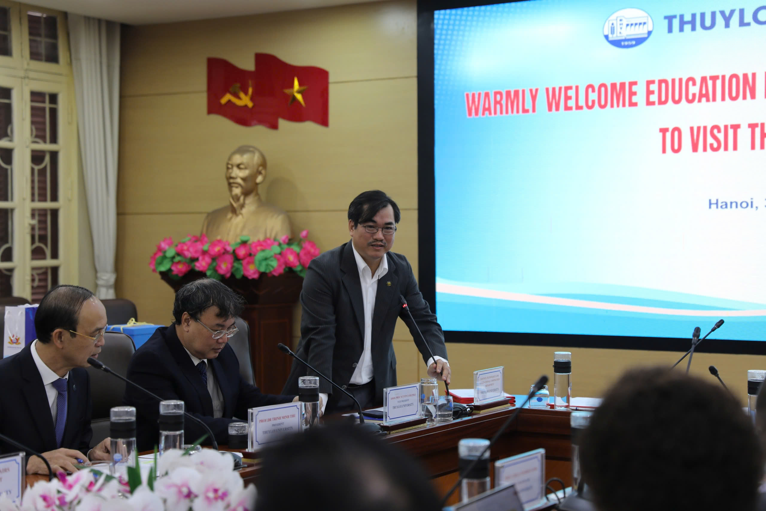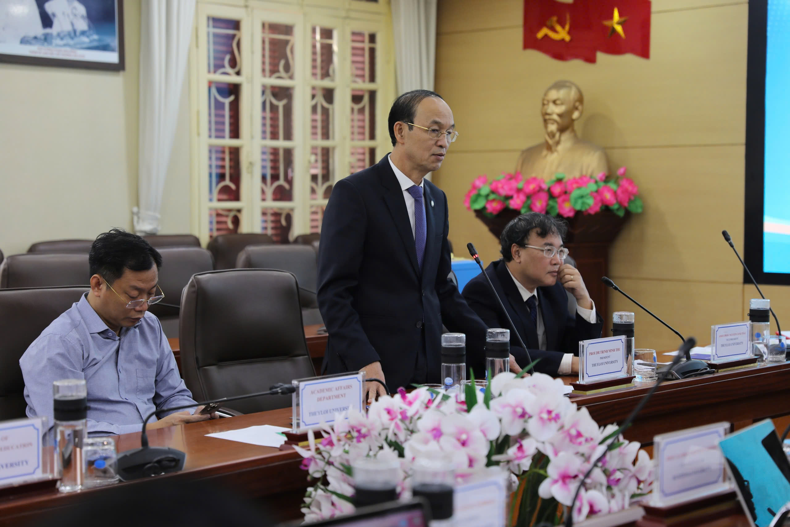 Về phía Trường Đại học Thủy lợi có sự tham dự của GS.TS. Trịnh Minh Thụ – Hiệu trưởng Nhà trường; PGS.TS. Nguyễn Cảnh Thái – Phó Hiệu trưởng Nhà trường; Đại diện Lãnh đạo Phòng Khoa học Công nghệ và Hợp tác Quốc tế, Phòng Đào tạo cùng Đại diện Lãnh đạo các Khoa, Trung tâm của Nhà trường.