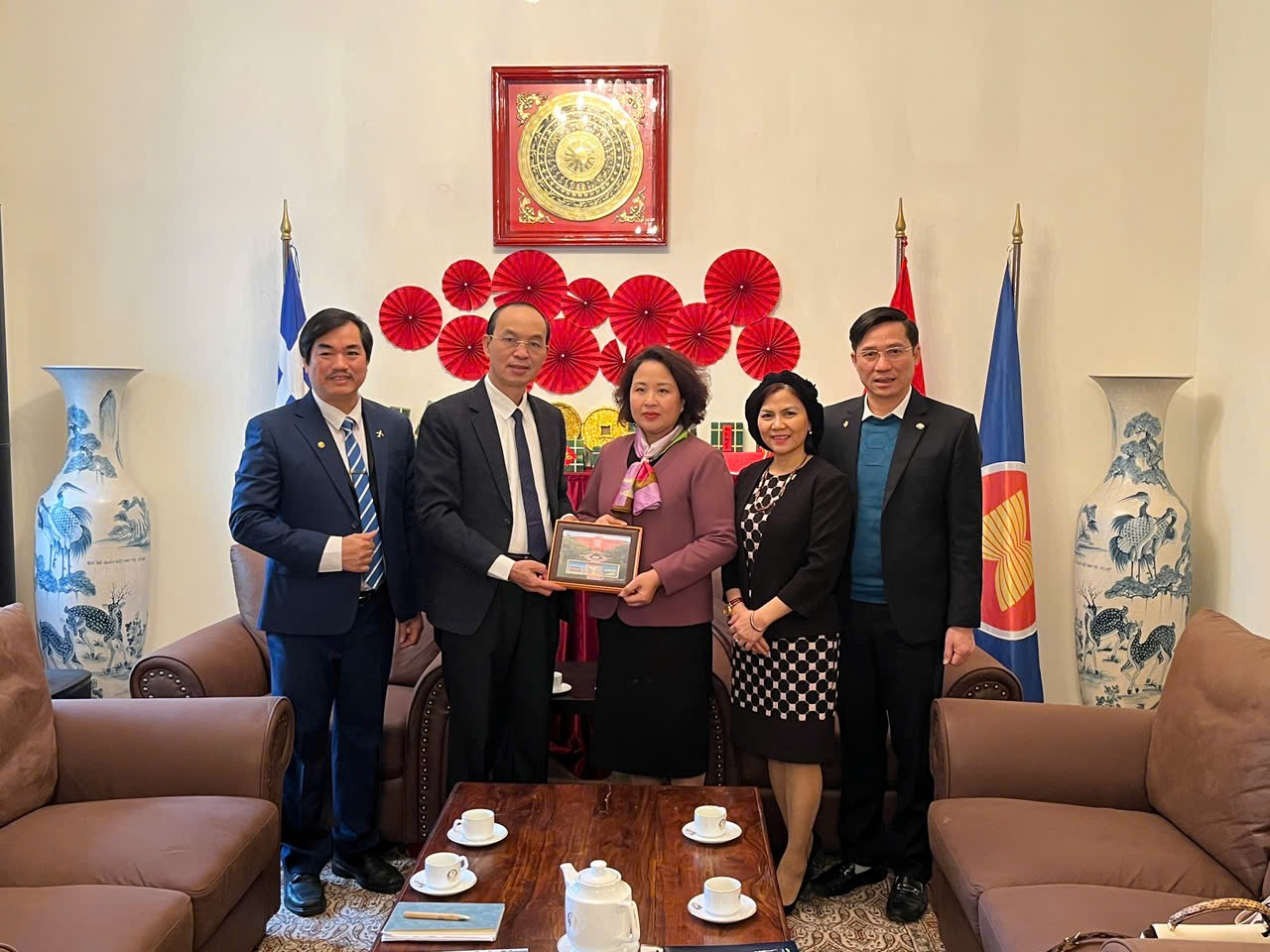 Đoàn công tác chụp ảnh kỉ niệm với Đại sứ và các cán bộ chuyên trách của ĐSQ Hy Lạp