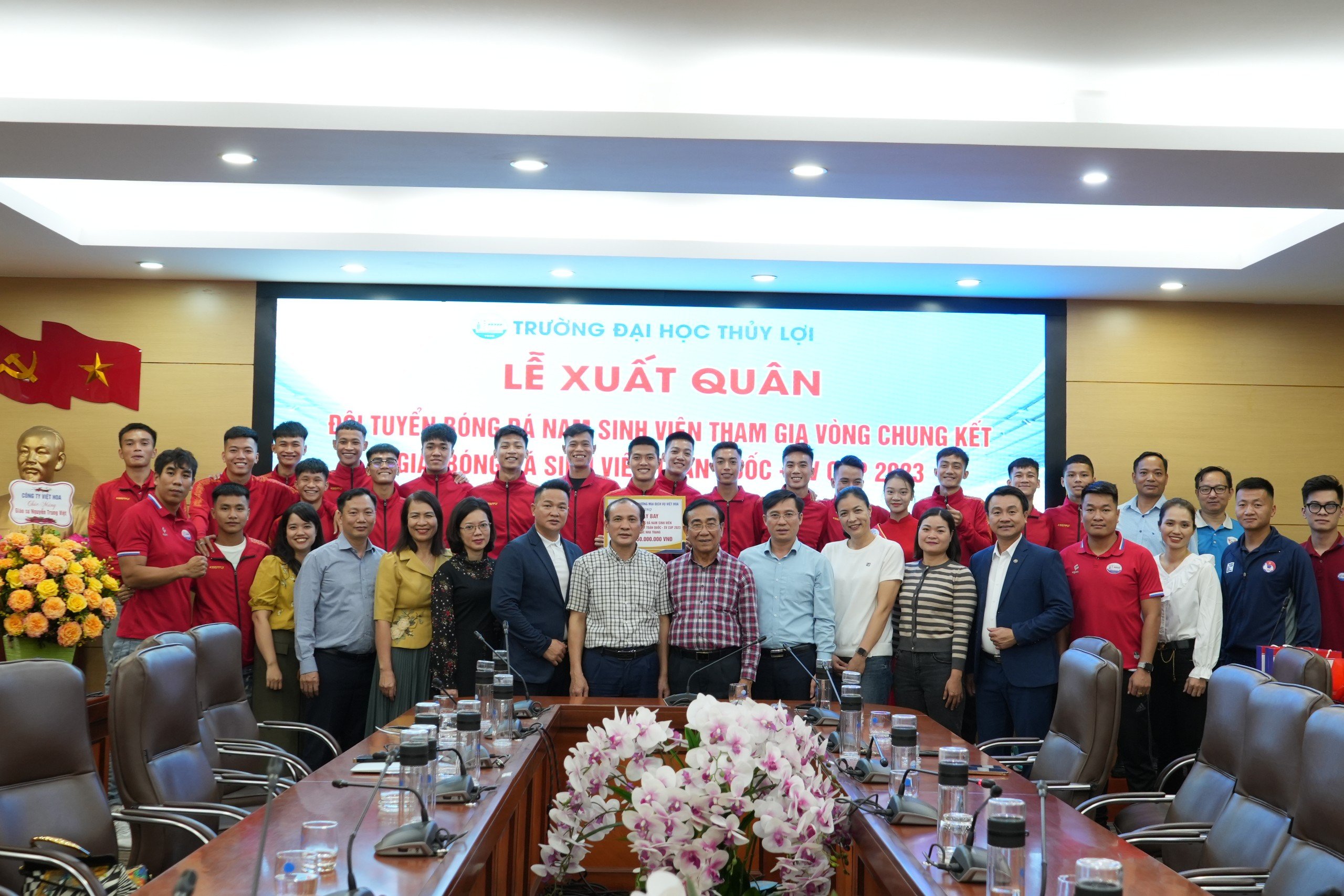 Phát biểu tại buổi lễ, Ông Nguyễn Mã Lương, Phó Giám đốc Công Ty TNHH TM&DV Việt Hoa, hứa sẽ đồng hành và tài trợ cho đội bóng trong các năm tiếp theo. GS.TS Nguyễn Trung Việt, Phó Hiệu trưởng Nhà trường, cũng đã gửi lời chúc mừng và động viên đội tuyển, Giáo sư tin tưởng vào khả năng vượt qua mọi khó khăn để tiến tới thành công của một tập thể đoàn kết, có thực lực và nhiệt huyết.