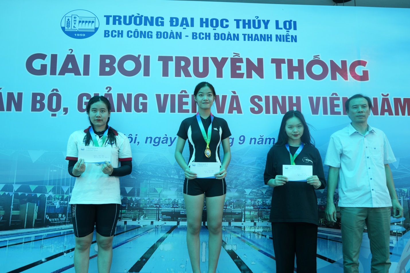 Bùi Minh Thương, tân sinh viên K65 ngành Thương mại điện tử đã phá kỷ lục tồn tại suốt nhiều năm tại giải bơi của Trường Đại học Thủy lợi. Cô sinh viên người Thái Bình về Nhất và bỏ xa đối thủ hơn 30m ở cự ly 100m tự do nữ.