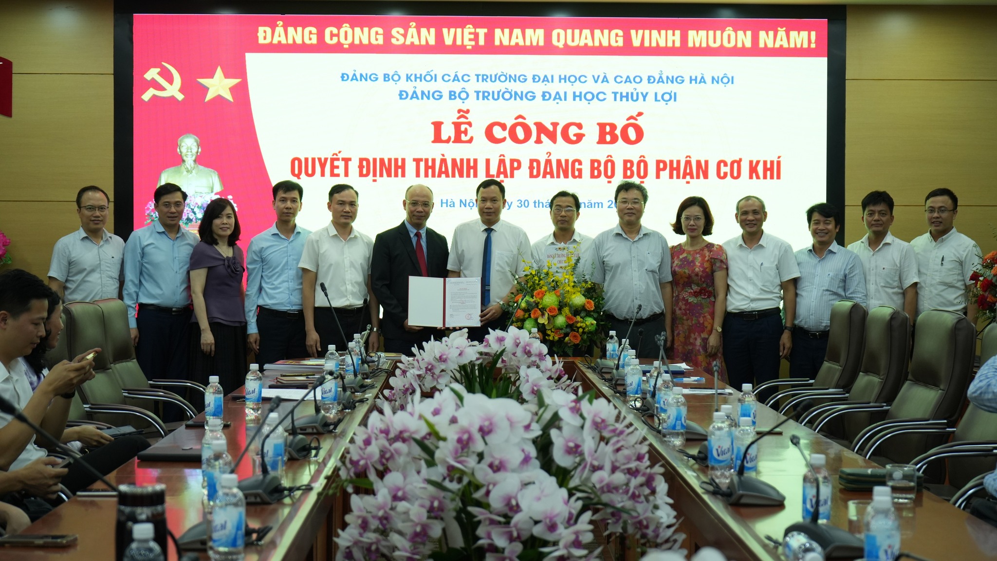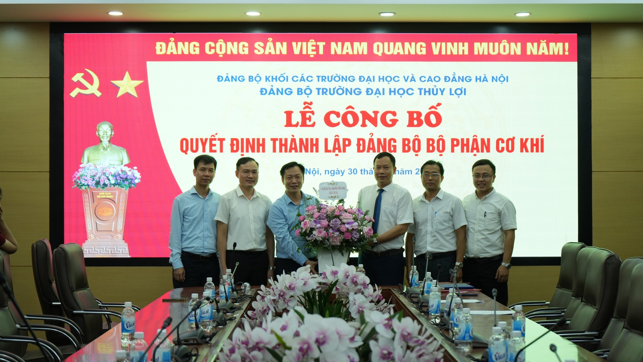 Theo Quyết định, Đảng bộ bộ phận Cơ khí được thành lập trực thuộc Đảng ủy Trường Đại học Thủy lợi trên cơ sở Chi bộ Cơ khí, gồm 4 chi bộ trực thuộc: Chi bộ Cơ khí 1 (gồm 11 Đảng viên thuộc Bộ môn Cơ học kỹ thuật, Bộ môn Đồ họa kỹ thuật, Văn phòng Khoa và Sinh viên), Chi bộ Cơ khí 2 (gồm 7 Đảng viên thuộc Bộ môn Kỹ thuật hệ thống công nghiệp), Chi bộ Cơ khí 3 (gồm 11 Đảng viên thuộc Bộ môn Công nghệ cơ khí và Bộ môn Kỹ thuật Cơ điện tử) và Chi bộ Cơ khí 4 (gồm 8 Đảng viên thuộc Bộ môn Kỹ thuật ô tô). Các đồng chí được chỉ định vào Ban Chấp hành Đảng bộ Cơ khí, nhiệm kỳ 2020-2025, gồm: đồng chí Đoàn Yên Thế, đồng chí Nguyễn Ngọc Huyên; đồng chí Nguyễn Hữu Tuấn, đồng chí Đặng Ngọc Duyên và đồng chí Nguyễn Huy Thế, trong đó đồng chí Đoàn Yên Thế giữ chức vụ Bí thư, đồng chí Nguyễn Ngọc Huyên giữ chức vụ Phó Bí thư Đảng bộ bộ phận Cơ khí.