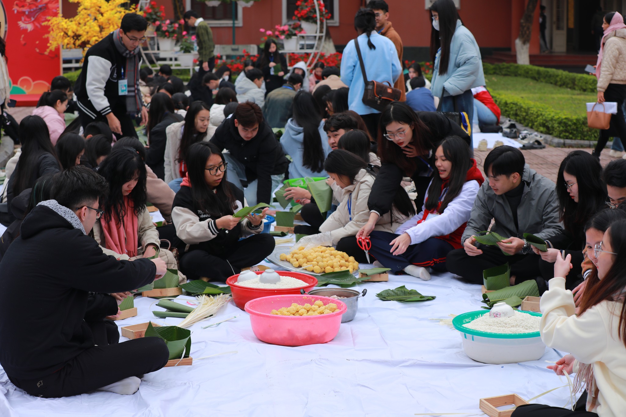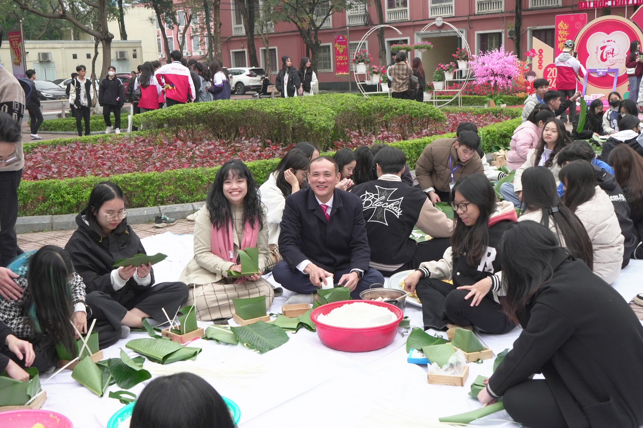 Cũng trong khuôn khổ Ngày hội, các em học sinh đã được tham gia các hoạt động vui chơi giải trí hấp dẫn như gói bánh chưng, minigame, giao lưu văn nghệ. Đây là những hoạt động giúp các em thư giãn, giải trí và có thêm những trải nghiệm đáng nhớ tại Trường Đại học Thủy lợi.