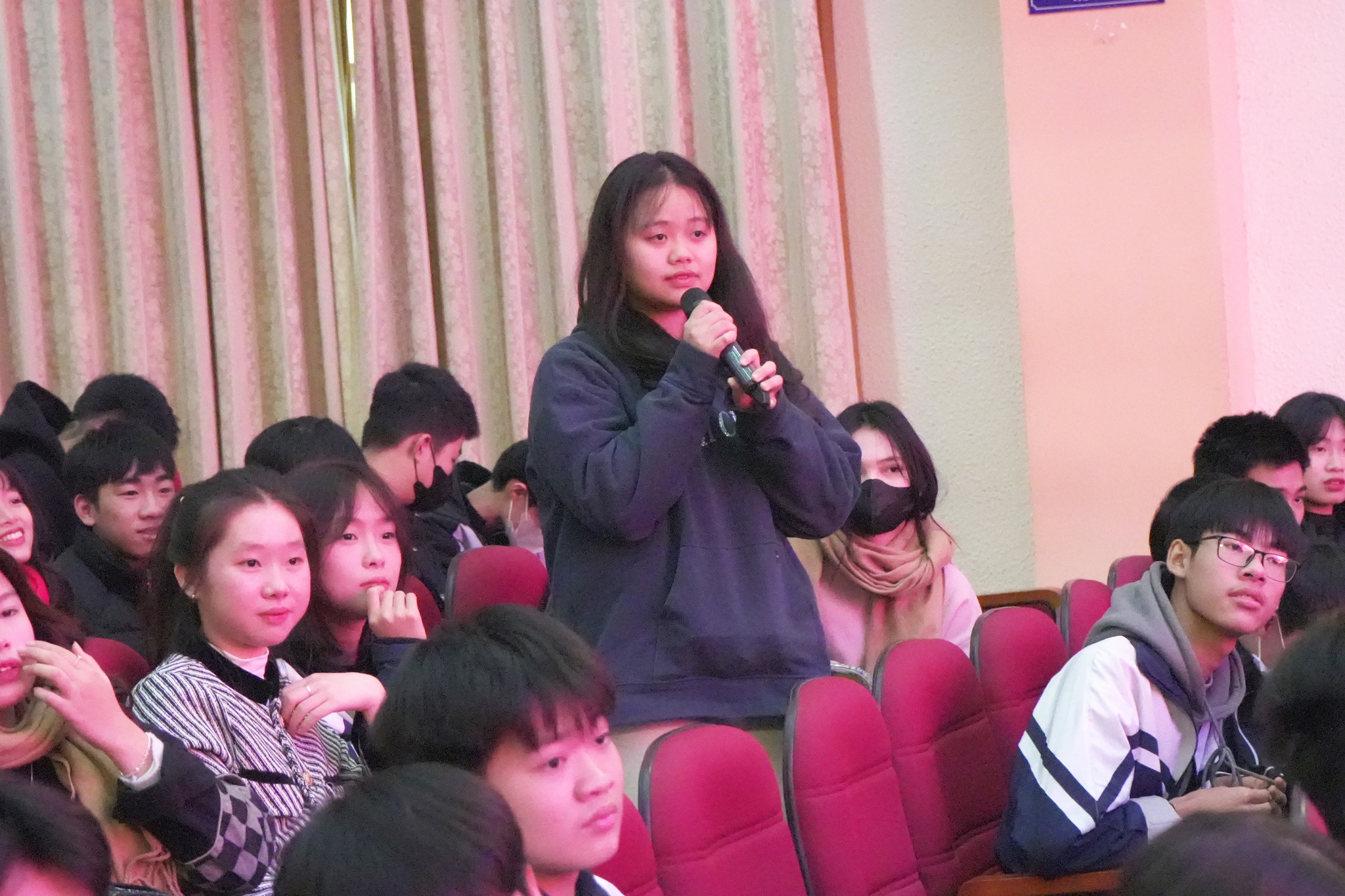 Đặc biệt, các em học sinh đã có cơ hội giao lưu với giảng viên, sinh viên của trường. Các thầy cô giáo và các anh chị sinh viên đã nhiệt tình giải đáp các thắc mắc của các em về chương trình học, cơ hội việc làm,…