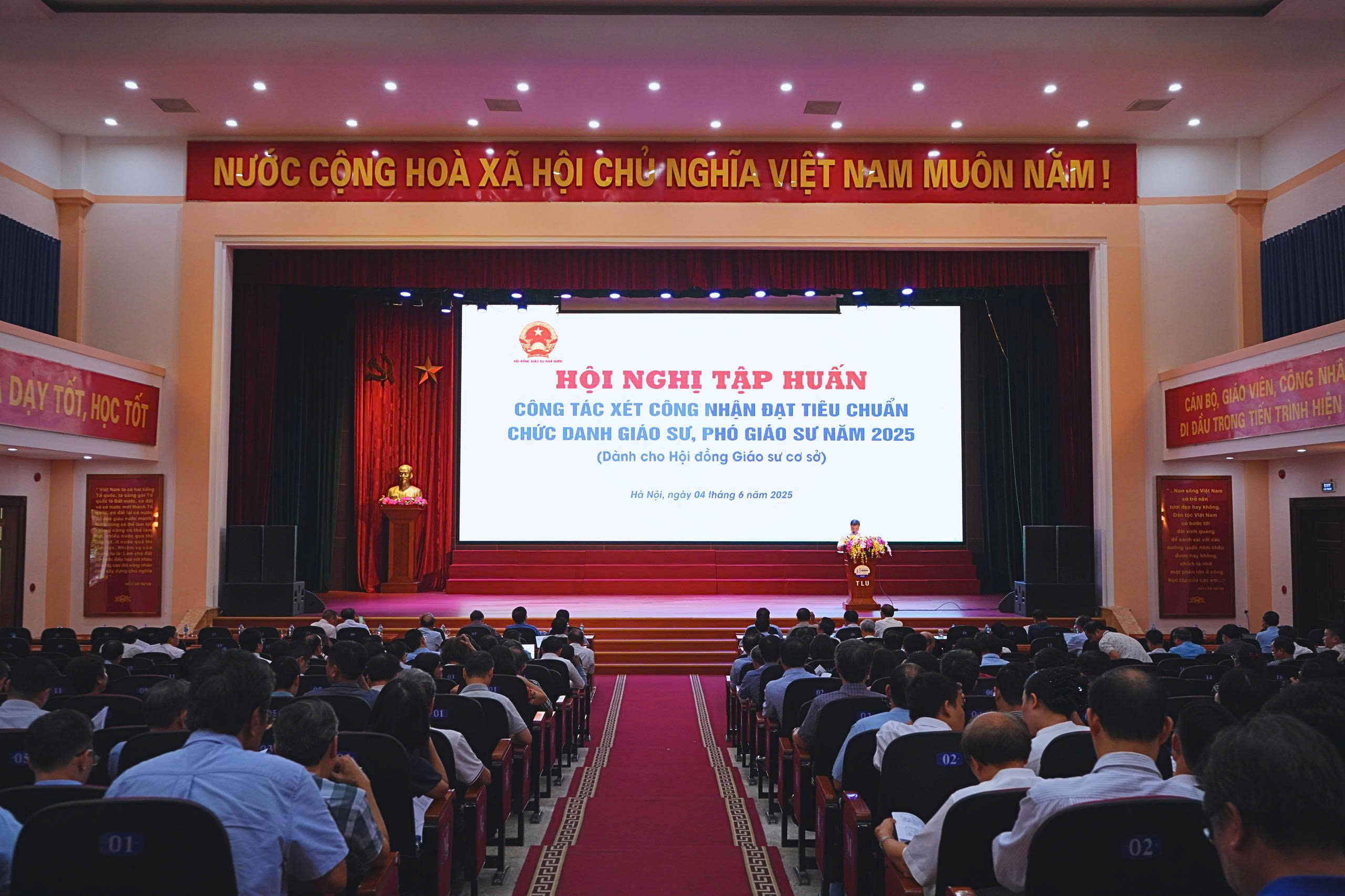 Hội nghị cũng tập huấn về quy trình xét công nhận tiêu chuẩn chức danh Giáo sư, Phó giáo sư. Theo đó, các Hội đồng Giáo sư cơ sở tiếp tục thực hiện theo đúng trình tự, thủ tục như năm 2024. Đáng chú ý, năm 2025, có 5 Hội đồng Giáo sư ngành, liên ngành thực hiện xét hồ sơ trực tuyến, gồm các ngành: Công nghệ thông tin, Điện-Điện tử-Tự động hóa, Thuỷ lợi, Toán học và Vật lý. 23 Hội đồng giáo sư ngành, liên ngành còn lại thực hiện thẩm định và kết luận hồ sơ ứng viên thông qua phần mềm trực tuyến, áp dụng theo quy định.