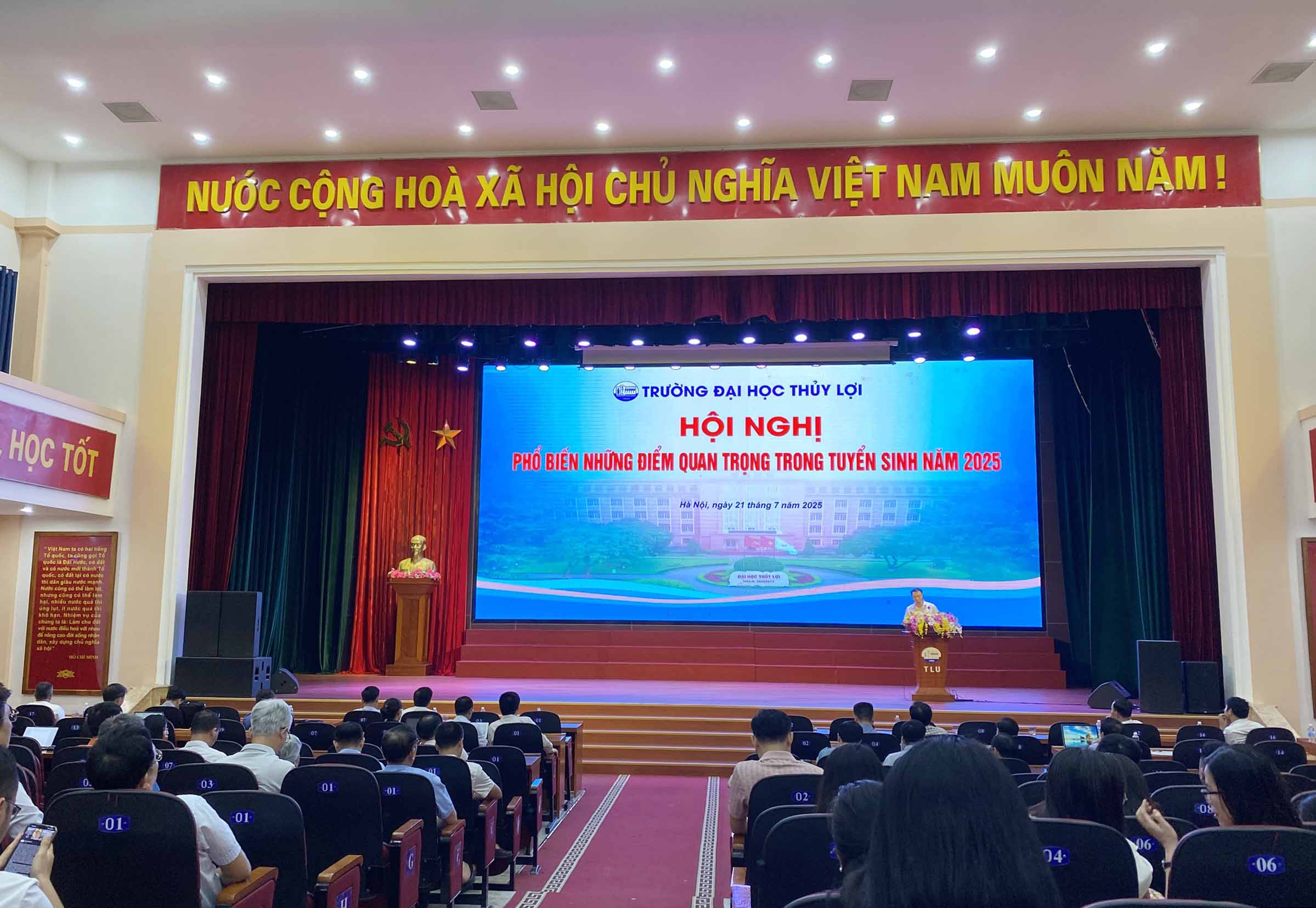 Năm 2025, Trường Đại học Thủy lợi tuyển sinh ĐHCQ của 43 ngành/chương trình đào tạo với 5.350 chỉ tiêu. Trường tuyển sinh theo 4 phương thức: Xét tuyển thẳng theo quy chế của Bộ GD&ĐT; Xét tuyển học bạ THPT kết hợp ưu tiên: tính trung bình các môn lớp 10, 11, 12 + điểm ưu tiên + điểm chứng chỉ ngoại ngữ; Xét tuyển từ kết quả thi tốt nghiệp THPT 2025 và xét tuyển từ kết quả thi đánh giá tư duy.